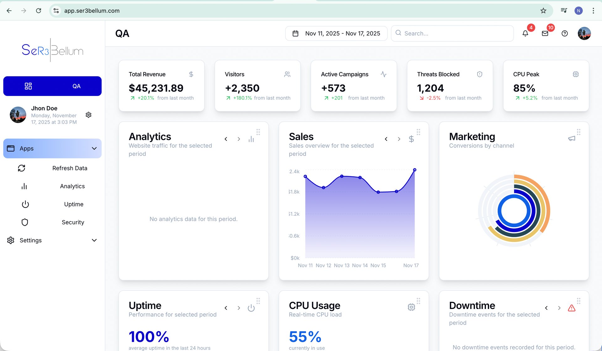 Get early access to Ser3bellum and monitor your business online, including speed, uptime, marketing campaigns, as well as your orders and deliveries.