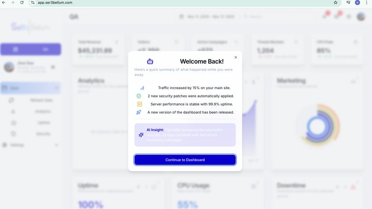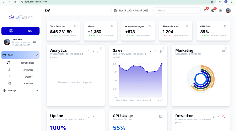 Get early access to Ser3bellum and monitor your business online, including speed, uptime, marketing campaigns, as well as your orders and deliveries.