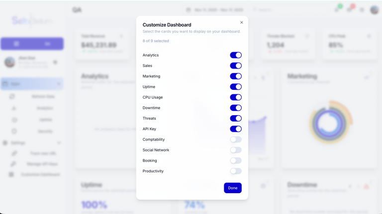 You can select the information that is relevant only to you and your business: performance, errors, uptime, SEO, CRO, and more.